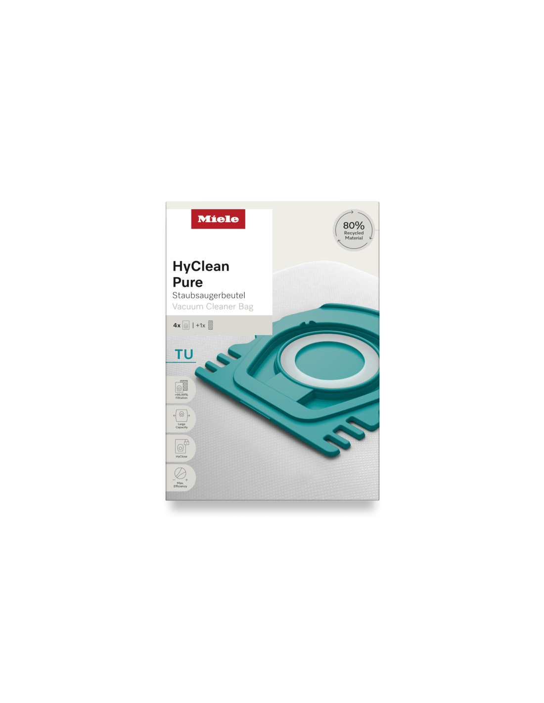 Vrećica za prašinu HyClean Pure GN s najboljim učinkom filtracije od 99,99 % s Miele AirClean sustavom.